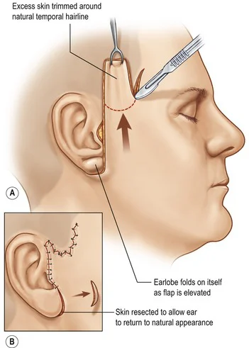 Po zarouškování a dezinfekci operačního pole se provede řez kolem boltce. Následná disekce a vizualizace struktur je provedená dle zvolené metody. U miniliftu je zvedána pouze kůže, u SMAS liftingu se ozřejmuje SMAS, který je následně zredukován nebo splikován, u Deep Plane Faceliftu postupujeme nejhlouběji, a to mezi SMASem a hlubokými strukturami (masseter, větve faciálního nervu s cévami, nebo duktus parotideus). Během operace jsou všechny struktury identifikované a chráněné před poraněním. Následně se uvolněné tkáně vytahují (liftují) směrem nahoru a do strany. Kožní nadbytek je vyměřen a zredukován. Rána je šitá vstřebatelným a nevstřebatelným materiálem. Někdy, hlavně u rozsáhlejší operace, dávám tenké drény, výjimkou není ani tzv. hemostatická síť (nevstřebatelné šití přes kůži, ponecháno 24-48h, prevence pooperačního krvácení, zlepšuje hojení). Po sešití se rány sterilně překryjí a nasadí se kompresní bandáž proti krvácení a otoku